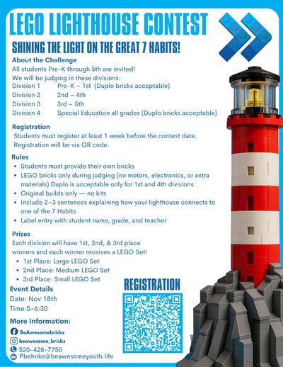 Each division will have 1st, 2nd, & 3rd place winners and each winner receives a LEGO Set!